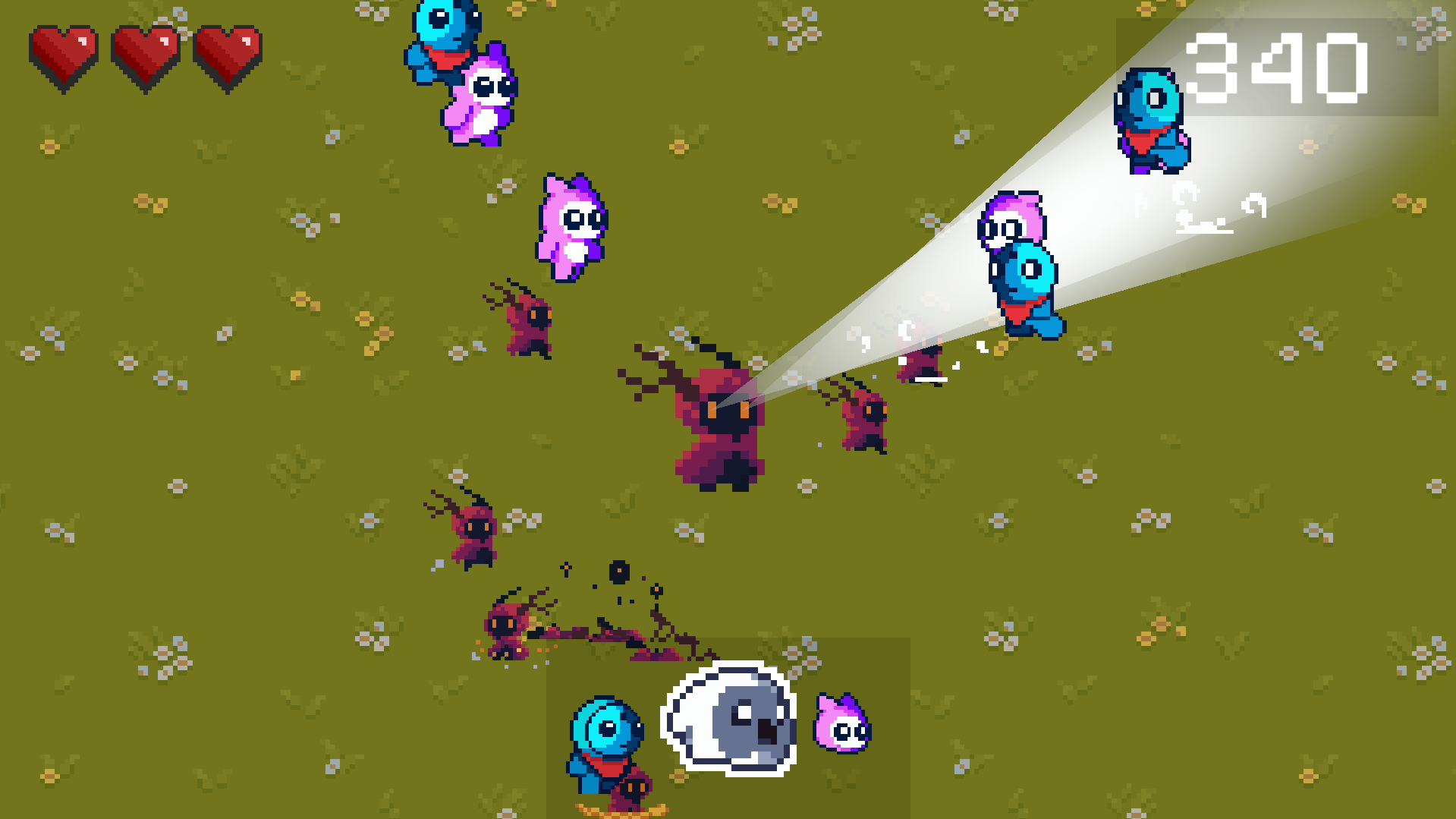 Petit jeu cool, dommage que l'UI en bas de l'écran soit aussi dérangeant imo ? La "lumière" suffit pas a voir qu'on a changé de masque vue que j'ai du regarder plusieurs fois l'UI d'en bas pour le comprendre, peut être que les couleurs choisis sont pas assez différentes ? Ou mettre le masque sur la tête de notre petit perso !